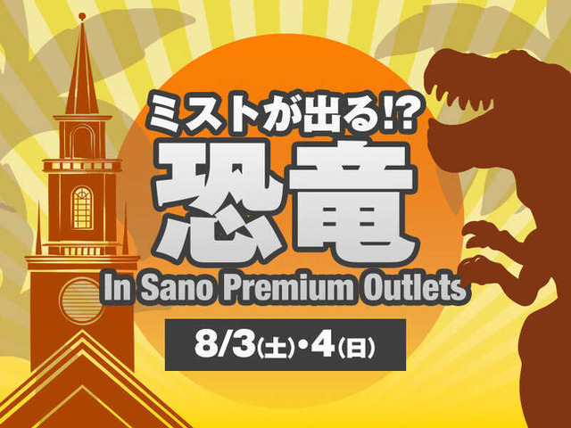 佐野プレミアム・アウトレット(所在地:栃木県佐野市 運営:三菱地所・サイモン株式会社)は、暑い夏でもショッピングの合間を快適に過ごしていただくため、2024年8月3日(土)、4日(日)に、ひんやりと気持ちいいミストを吹き出す巨大恐竜が登場する2日間限定のイベント「ミストがでる!? 恐竜 in 佐野プレミアム・アウトレット」を開催します。あわせて、ご家族で楽しめるワークショップや夏の風物詩を使った装飾、グルメをご案内します。