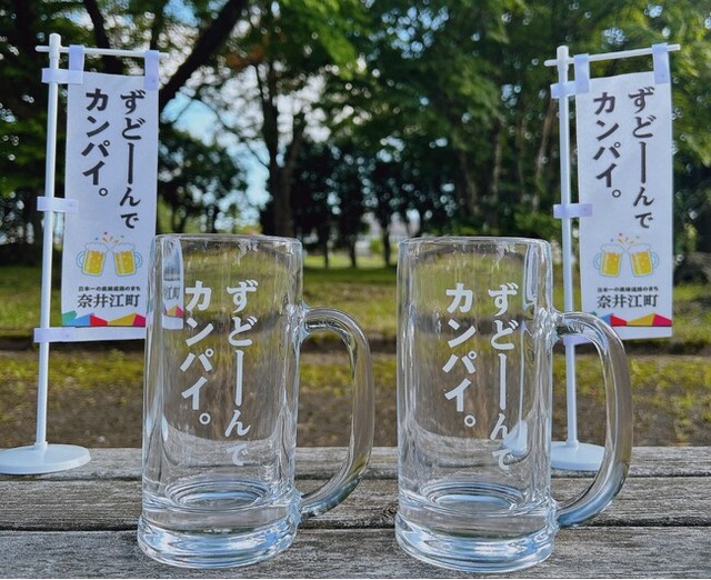 その中に、町の手土産としての特産品を開発することを目標とした、「トクサンヒンチーム」があります。今後、新たな特産品を考えるにあたっては、商工会や町内事業者の協力や、新しいことを楽しんで考えられるような環境づくりが不可欠です。そこで、まずは町内の店舗や事業所に使ってもらえるツールとして、「ずどーんジョッキ」を考案しました(「ずどーん」は町のキャッチフレーズ)。
