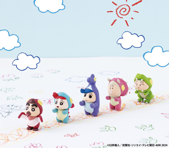映画に登場する恐竜のコスチュームを着た「プテラノドンしんちゃん」をはじめ、「恐竜しんちゃん」「夏休みしんちゃん」「探検隊しんちゃん」の全4種。