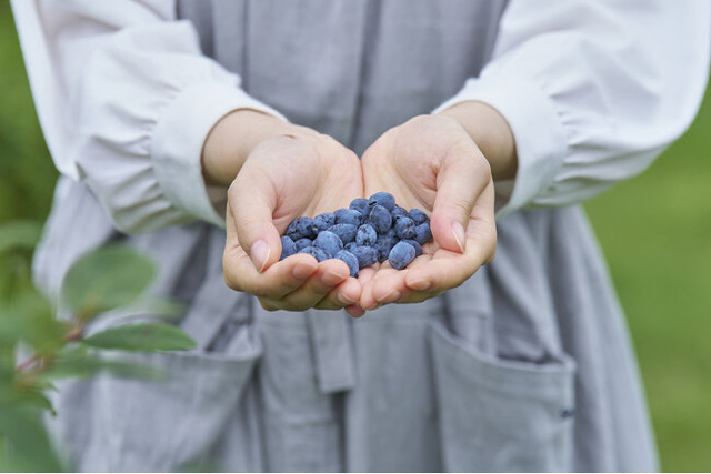 2024年に北海道岩見沢市栗沢地区で収穫されたばかりのハスカップの実を使用。酸味や糖度のバラ