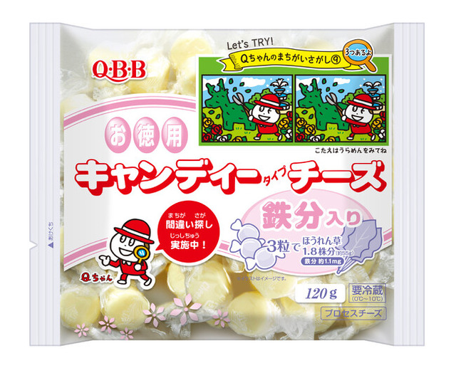 1979年の発売から45年を迎えるキャンディチーズは、ひと口サイズで個包装という食べやすさ、お子様でも開けやすいひねり包装、お料理にも使いやすいなどのご意見から長年愛されてきました。今回、Qちゃんの間違い探しパッケージを展開することで、お子様のおやつタイムにより楽しくキャンディチーズを食べていただけるようにと願い企画しました。