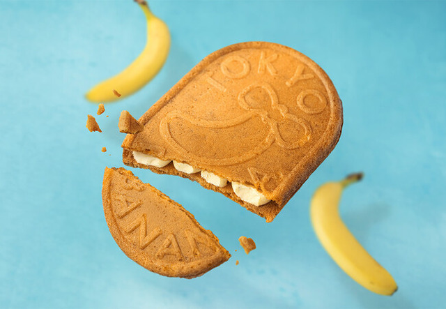 バナナとアーモンドを練り込んだオリジナルのクリスピー生地はサクッと軽やか。ウエハースやゴーフレットとも違う、とってもクリスピーなサクサク食感にこだわりました。生地に描かれた東京ばな奈ちゃんがとってもキュート!