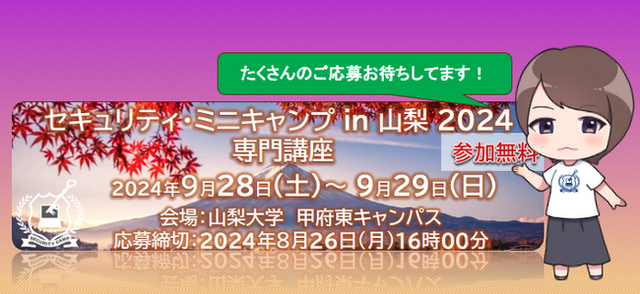 https://www.security-camp.or.jp/minicamp/yamanashi2024.html