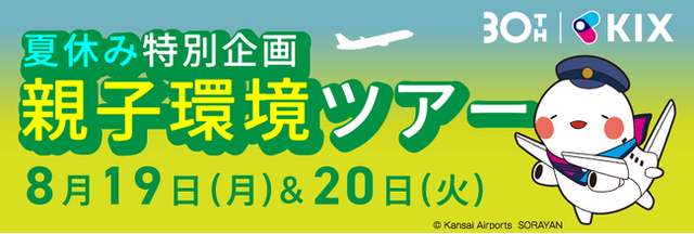 関西エアポート株式会社は、2024年8月19日(月)と20日(火)に関西国際空港開港30周年記念「夏休み特別企画 関西国際空港親子環境ツアー2024」を開催することをお知らせいたします。