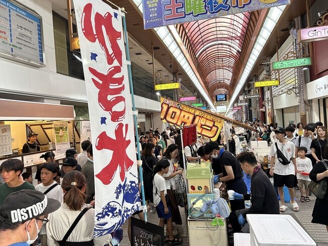 例年1日5万~8万人が訪れる土曜夜市には、昔懐かしい屋台や最新の屋台、企業協賛ブースなど多岐にわたる屋台が200以上軒を連ねています。