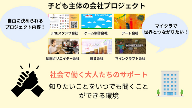 2024年9月開校予定のNIJINアフタースクールでは、子どもたちがメタバースで会社を経営し、社会のためになるやりたいことを実現していくプロジェクトです。子どもたち主体で進めるプロジェクトは、社会人がサポートします。子どもたち自ら声をかけ、サポートをお願いします。社会には、どのような課題があるのか、解決するためには何が必要なのかを考えることや、社会人とのコミュニケーションを通して、創造性・表現力を高めます。