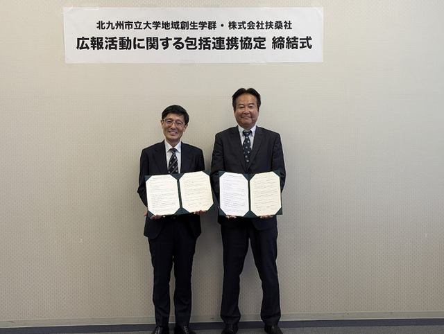 北九州市立大学地域創生学群(学群長、地域共生教育センター長・西田心平)と株式会社扶桑社(代表取締役社長・秋尾弘史)は、地域創生学群における広報活動やブランド力向上、人材育成を目的とする包括連携協定を締結しました。