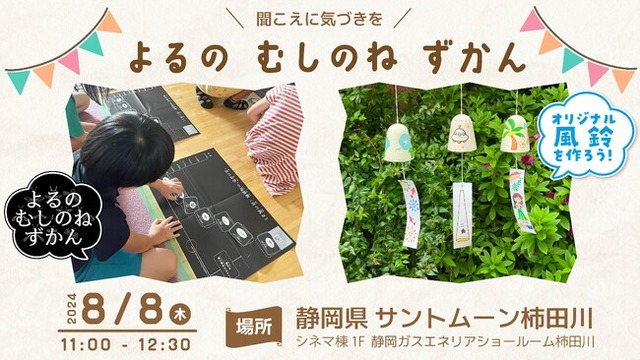 眼鏡市場は、こどもと一緒に楽しみながら“きこえ”について学ぶことが出来る『よるの むしのね ずかん』ワークショップを2024年8月8日(木)に、静岡ガスエネリアショールーム柿田川(静岡県駿東郡清水町玉川61-2サントムーン柿田川シネマ棟1F)にて開催します。