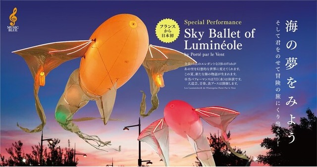 今年の注目は、フランスから日本初上陸となる「ルミネオール」による光の空中バレエ。全長15mの光のオブジェが、高松の夜空を舞い、幻想的でロマンチックな空間を演出します。そのほか、SOLO-DUOや栗コーダーカルテット、Maya Hatch (マヤ・ハッチ) Presents BXPなどのライブや、世界で活躍するフィジカルコメディデュオ「ゼロコ」のパフォーマンスが会場を盛り上げます。