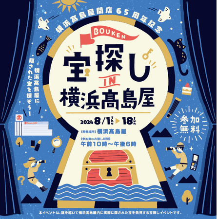 横浜高島屋では、開店65周年を記念した【<横浜高島屋 開店65周年記念>宝探しIN横浜高島屋】を8月1日(木)から18日(日)まで開催いたします。
