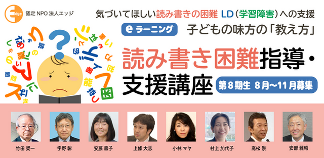 【読み書き困難指導・支援講座】では、読み書きが困難とはどういうことか、指導・支援にあたっての心がまえ、困っている児童生徒への気づき、アセスメント、ICT の使用、英語の指導・支援など、すぐに現場にいかせる学習支援方法・実践例を学べます。
