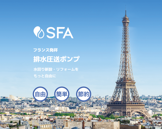 フランス発祥の排水圧送ポンプ『SFAポンプ』は、65年の歴史を誇り、全世界で累計1000万台以上の導入実績があります。日本法人のSFA Japan株式会社は、2011年の設立してから、既に皆様の身近な様々な場所に累計4万件以上導入されています。