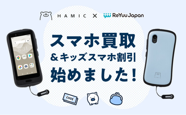 Hamee(ハミィ)株式会社(本社:神奈川県小田原市、代表取締役社長:水島 育大、証券コード:東証スタンダード 3134)が運営するキッズスマホ「Hamic MIELS(はみっくミエルス)」は、ReYuu Japan(リユージャパン)株式会社(大阪市北区、代表取締役社長:有馬知英、証券コード:9425、以下「ReYuu Japan」)と連携し、同社のスマートフォンオンライン買取サービスの利用者に、Hamic MIELSの10%OFFクーポンを配布する「スマホ買取&キッズスマホ割引プログラム」を開始します。