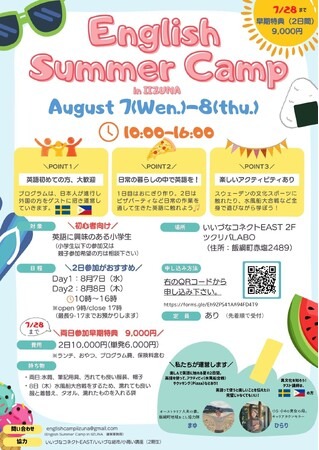 英語を使うと楽しいことを伝えたい!完璧じゃなくてもいい!そんな想いの仲間が集まり、飯綱町で楽しく英語に触れる夏休みのイベント、English Summer Camp in IIZUNA を企画しました。外国人の方をゲストで招き、海外のゲームを楽しんだり、おにぎりやピザ作りをしながら生きた英語に触れ学ぼう!