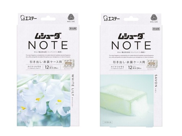 エステー株式会社は、“清潔感”と“シンプル”がテーマの「ムシューダ NOTE(ノート)」に新たに〈引き出し・衣装ケース用〉をラインナップし、8月12日から全国のスーパー、ドラッグストア、ホームセンター、ネットショップなどで新発売します。