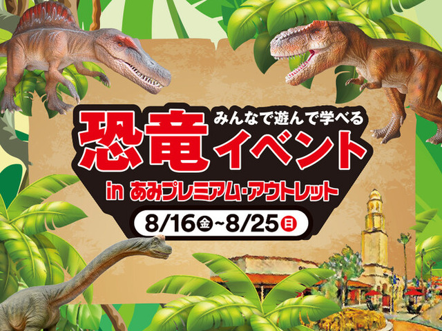 あみプレミアム・アウトレット(所在地:茨城県稲敷郡阿見町 運営:三菱地所・サイモン株式会社)は、子どもから大人まで楽しめる「恐竜イベントin あみプレミアム・アウトレット」を夏休み期間の8月18日(日)~27日(火)に開催します。リアルな動きが体感できる「動く恐竜ロボット」の展示や、全問正解で恐竜イラストレーター描き下ろしの限定ステッカーがもらえる恐竜クイズラリーを開催します。博物館によるミニ移動博物館も行われます。