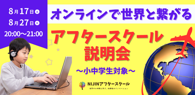 株式会社NIJIN(本社:東京都江東区、代表取締役:星野達郎)が運営する小中学生を対象にした世界とつながるメタバース学童(2024年9月1日(日)開校)が8/17(土)・8/27(火)に説明会を開催します。