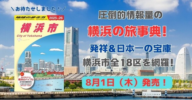 株式会社 学研ホールディングス(東京・品川/代表取締役社長:宮原博昭)のグループ会社、株式会社 地球の歩き方(東京・品川/代表取締役社長:新井邦弘)は、2024年8月1日(木)に『地球の歩き方 J16 横浜市 2025~2026』を全国書店及びオンライン書店で発売いたしました。