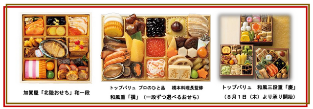 また近年お客さまから、親族の集まるお盆の帰省のタイミングで、次に集う年末年始に食べるおせちを選びたいというお声を多くいただくようになりました。これを受けてイオンでは 昨年から従来よりも約1カ月早い8月1日(木)より一部商品の承りを開始し、対象商品を昨年の2品目から今年は4品目に増やしました。