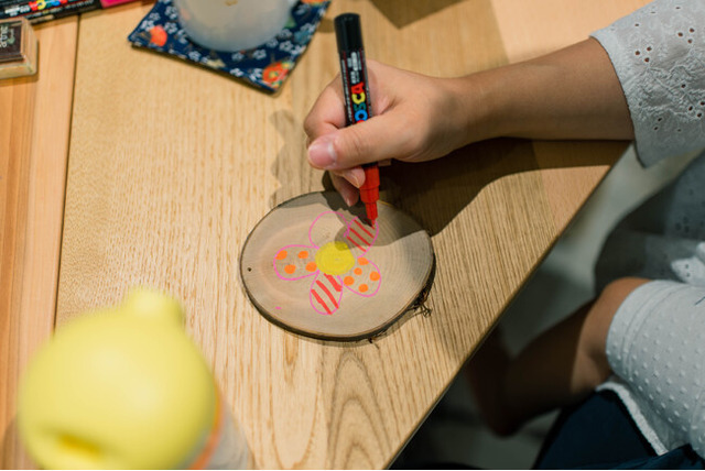 地元木材の端材とふれあい、自然環境や資源の大切さ学んでもらうことを目的に、大小さまざまな輪切り丸太にカラフルな色を塗るワークショップと、みやこ杣木(そまぎ)*について学ぶクイズ大会を開催します。つくった丸太は、イオンモール北大路4階に、8月31日(土) に新たにオープンする「もくいくひろば」の壁面に使用予定です。建築材の加工時に発生する端材で、空間を彩るアートをつくることで、資源の大切さや自然環境の未来について考えるとともに、空間づくりの楽しさを感じてもらう機会となることを目指します。