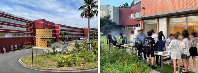 (左)レクトーレ葉山湘南国際村外観、(右)海の幸やバーベキューを楽しんでいただきました
