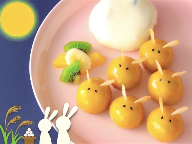 お月見にピッタリのうさぎや月をモチーフにしたスイーツを作ります。お月見団子をイメージしたまん丸スイートポテトは、耳と目をつけてうさぎに変身♪お餅を使わなくても簡単にできるフルーツ大福は、ライスペーパーで色とりどりのフルーツやヨーグルトクリームを包みます。一緒に楽しいおやつの時間をお過ごしください。