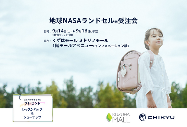 ランドセルの企画・販売を行うCHIKYU株式会社(旧池田地球株式会社、東京都港区、代表取締役:村尾光一)は、大阪・くずはモールにて「地球NASAランドセル(R) 受注会」を開催いたします。