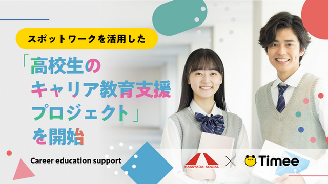「Choose Your Life!それでもなお、人生は選べる。」をスローガンに掲げる一般社団法人HASSYADAI social(所在地:東京都港区、代表:勝山恵一・三浦宗一郎、以下:ハッシャダイソーシャル)は、株式会社タイミー(所在地:東京都港区、代表:小川嶺、以下:タイミー)と協業のもと、高校生のキャリア教育支援プロジェクトを開始しました。まずは、通信制高校であるカシマ教育グループの各校、および、全日制高校である沖縄県立南風原高等学校(所在地:沖縄県島尻郡)、沖縄県立中部農林高校(所在地:沖縄県うるま市)をモデル校とし、高校生の主体的なキャリア選択の支援に取り組んでまいります。