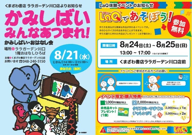 三井ショッピングパーク ララガーデン川口(運営:三井不動産商業マネジメント株式会社)は、日頃よりご愛顧いただいているお客さまへおトクなキャンペーンや夏休み限定のファミリー向けイベントを開催します。
