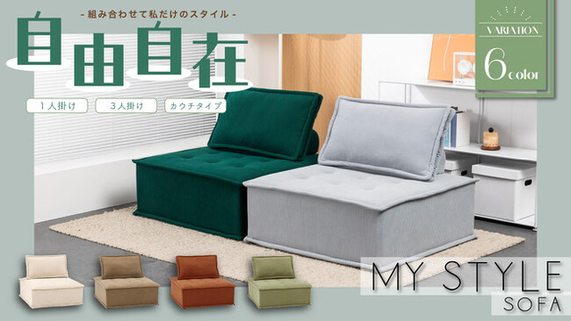 家具およびインテリア雑貨の卸売を行う不二貿易株式会社(本社:福岡県北九州市、代表取締役:田坂 良祐)は2024年8月1日(木)自由自在にレイアウトができる「MY STYLEソファ」を発売いたします。1人掛けの贅沢ソファとしてはもちろん、複数組み合わせることでベッドスタイルや、カウチスタイルなどに変身。またカラーバリエーションも豊富で、定番カラーからアクセントカラーまで全6色を展開します。こちらはインターネットや全国の家具店などで販売いたします。
