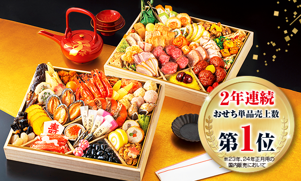 ※1…株式会社東京商工リサーチによる、2023年および2024年の「お正月用おせち料理」分野における商品別販売数量及び販売金額がNo.1