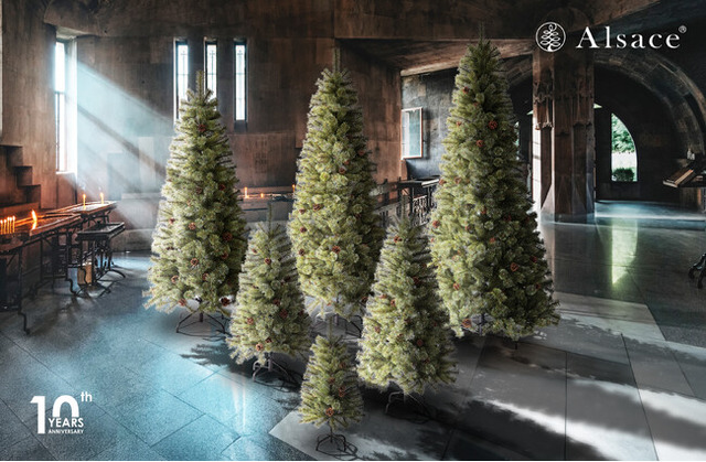 インテリアや雑貨を輸入・販売する株式会社GlobalBridgeTrading(本社:大阪府堺市 代表取締役:曽我 浩行)は、クリスマスツリー専門ブランド「Alsace(以下、アルザス)」にて2024年8月15日より、10周年記念の360cm超特大ツリーが新たに仲間入りした2024Ver.ツリーを発売いたします。