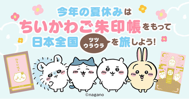 全国どこからでも参加でき、見ても楽しめる『ちいかわ なんか小さくてかわいいやつ』のご朱印企画が本日8月1日よりスタート!ちいかわのご朱印帳を持って旅に出かけ、旅先の神社仏閣でいただいたご朱印の写真とその神社仏閣の感想を100字以内でキャンペーンサイトよりお送りください。その写真の一部を10月末ごろにキャンペーンサイトでご紹介いたします!応募締切は9月30日(月)23時59分になります。