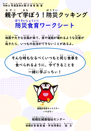 板橋区は、災害時での食事について学べる「親子で学ぼう!防災クッキング 防災食育ワークシート(以下、『ワークシート』)」を作成し、区ホームページで公開しました。