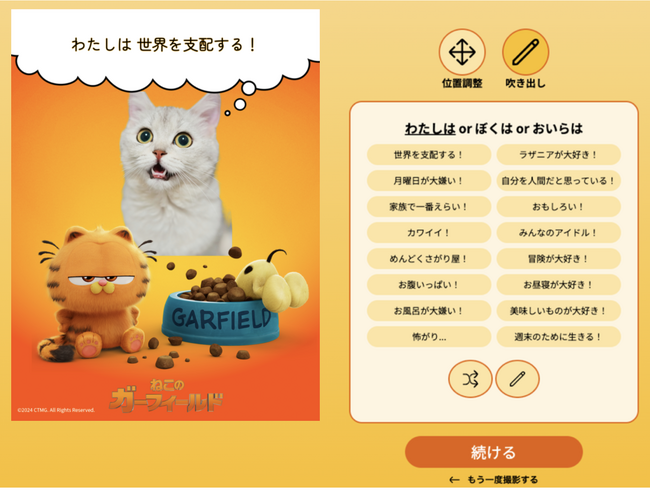 映画『ねこのガーフィールド』日本版ポスターのセルフィージェネレーターが公開