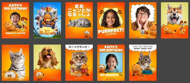 Photoroomアプリ内において、全11種類のガーフィールド仕様テンプレートを提供