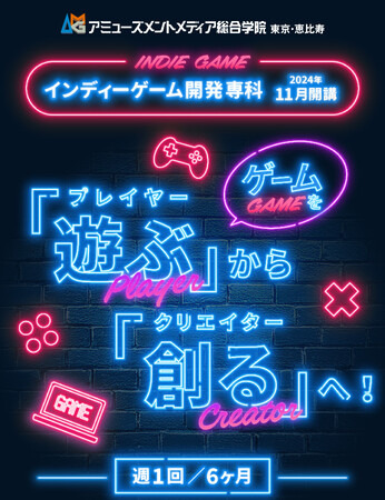 AMGは、商用ゲーム作品を開発する「AMG GAMES」を学内に構え、これまでのゲーム制作・販売実績をもとに、仕事や学業と両立しながら6ヶ月(週1回)でゲームの開発からリリースまでを一貫して学ぶことができる『インディーゲーム開発専科』を2024年11月より開講いたします。