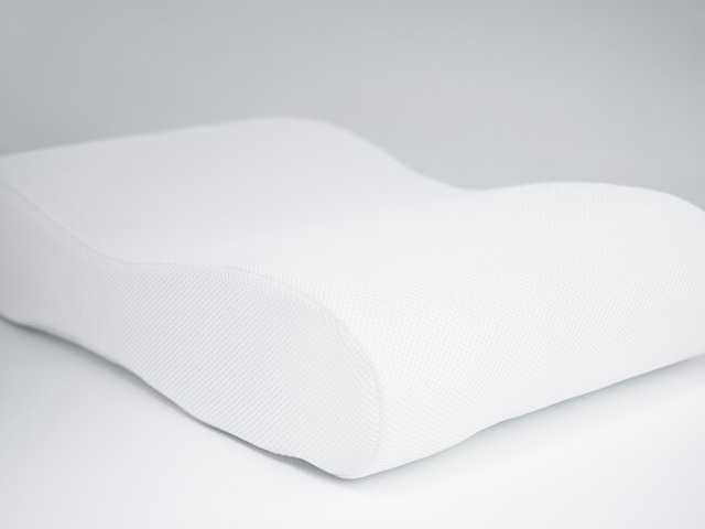 仰向け寝、横向き寝のいずれの寝姿勢もスムーズに受け止める、高さと硬さの形状にデザインしました。中央部分は、サイドに比べて低めで柔らかい触感にし、仰向け寝の際に首が自然な角度になるよう設計しています。横向き寝の時には、首から背骨までが真っすぐの姿勢になり、肩が圧迫されないことが望ましいと言われており、両サイドは高さと硬さを出しました。また、首を支える部分は、重量への耐性を持たせ、短期的な使用によるへたりに繋がらないよう、内部の繊維密度を上げました。(サポートパーツ)。