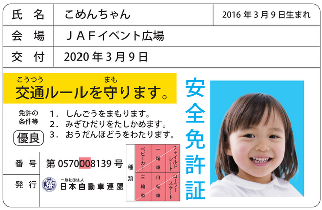 2.子ども安全免許証発行の方、抽選会1回ご参加