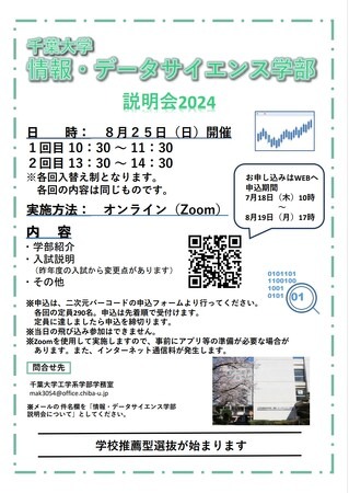 詳細や参加申し込み方法等は、千葉大学情報・データサイエンス学部HP(https://informatics.chiba-u.jp) をご覧ください。