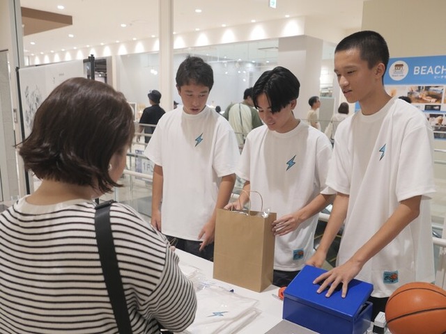 生徒たちは来店されたお客様に対し、環境課題と自分たちが製品づくりをした背景を自分の言葉で伝えました。その真摯な対応がお客様にも伝わり、実際に購買されていく姿が見られました。2日間で、合計63枚のTシャツを販売することができました。