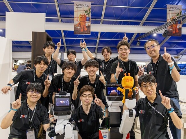 九州工業大学大学院生命体工学研究科および北九州市立大学の学生が中心となって結成しているチーム「Hibikino-Musashi@Home(以下、HMA)」が、2024年7月17日(水)~21日(日)にオランダ・アイントホーフェンで開催された世界最大のロボット・人工知能競技会「RoboCup 2024」の@ホームDSPLに出場し、世界大会で優勝という快挙を達成しました!世界の強豪チームを相手に、RoboCup 2017年、2018年の世界大会連勝以来、3度目の優勝です。