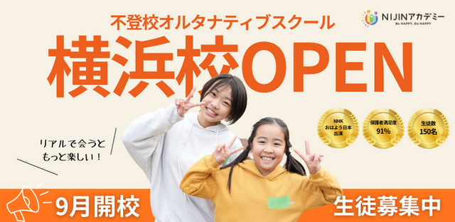 株式会社NIJIN(本社:東京都江東区、代表取締役:星野達郎)が運営する不登校オルタナティブスクール『NIJINアカデミー』はこの度、リアル教室“横浜校”を開校することをお知らせいたします。