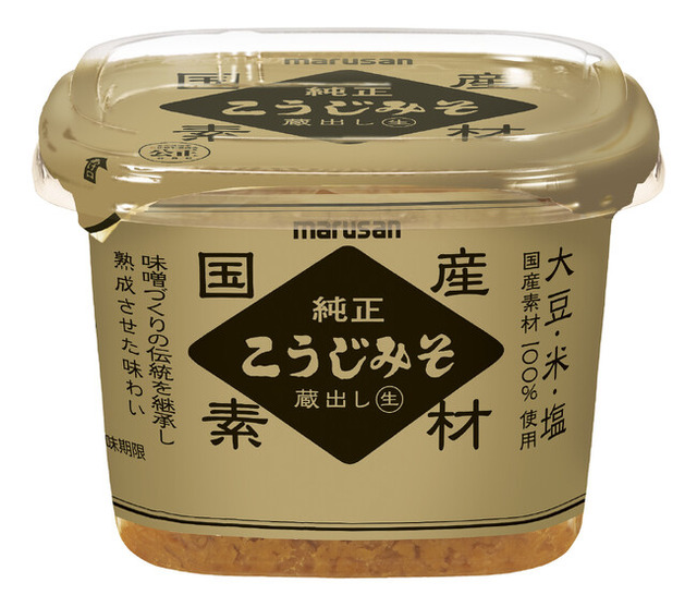 1970年発売、当社が誇るロングセラー商品「純正こうじみそ」は、米麹のさわやかですっきりした風味の中に、赤色系のみそのコクと旨みが感じられるバランスの良い味わいが特長です。この度発売する「国産純正こうじみそ 蔵出し生 500g」は「純正こうじみそ」らしい味はそのままに、原材料にこだわり国産素材100%使用、加熱殺菌をしない生タイプのため、蔵出しそのままのフレッシュな香りをお楽しみいただけます。パッケージについては、「純正こうじみそ」の象徴である菱形のアイコンを踏襲し、従来のガセット袋ではなくカップ容器を採用したことで、より便利にお使いいただけます。