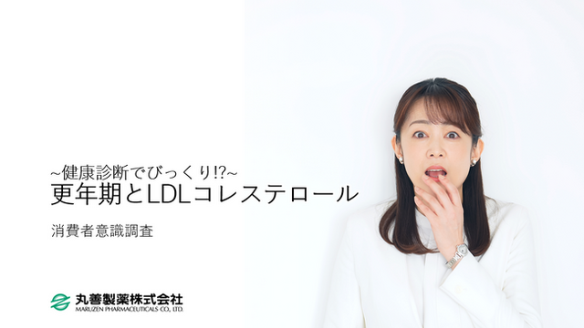 「LDLコレステロール値が気になりはじめた年齢」について調査した結果、平均で46.17歳、コアな年代は40代後半から50代後半となり、更年期と合致することが確認されました。