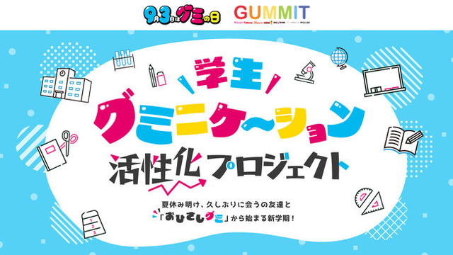 日本グミ協会は、グミを取り扱う国内関連企業からなるGUMMITとともに、9月3日のグミの日に向けて、新学期を迎える学生の間のコミュニケーションを活性化させる、「学生グミニケーション活性化プロジェクト」を始動いたします。本プロジェクト始動にともない、全国の中学・高校を対象に、GUMMIT参加メーカー6社のグミを配布する「クラスでレッツ!グミニケーション おひさしグミセットプレゼントキャンペーン」応募を開始いたします。