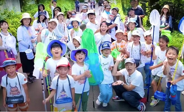 楽しかった1日の最後に、みんなで昆虫がいた元の場所に採集した昆虫をリリースしました。リリース後は香川さん、むし岡さんと記念撮影をして大満足の『昆虫ほんもの体験イベント』が終わりました。