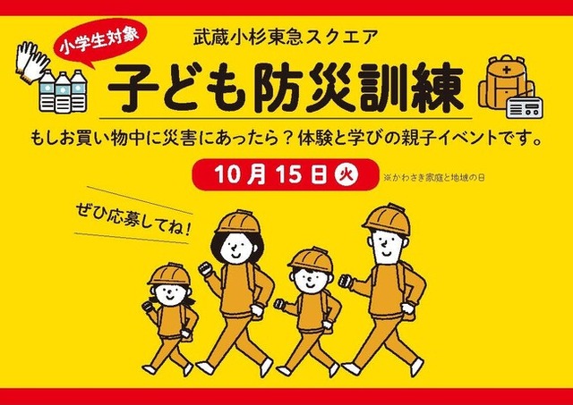 株式会社東急モールズデベロップメント(本社所在地:東京都渋谷区、代表取締役社長:佐々木桃子、以下:当社)が運営する地域密着型商業施設「武蔵小杉東急スクエア」(所在地:神奈川県川崎市中原区、以下:当施設)は、2024年10月15日(火)に、当施設で働くスタッフと、川崎市在住の小学生とその保護者を対象とした「武蔵小杉東急スクエア 子ども防災訓練(以下:本防災訓練)」を開催します。