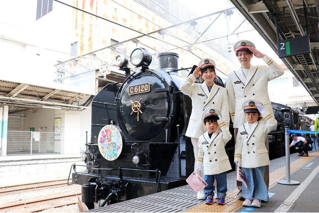 ・高崎駅ホームにて発車前にJR東日本駅長制服を着てSL前で記念撮影