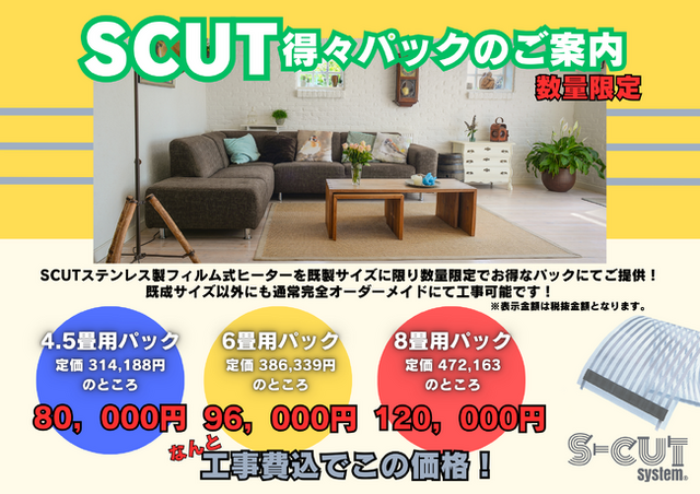 3パターンの既成サイズに限り、数量限定工事費込みのお得なパックを販売開始致します。